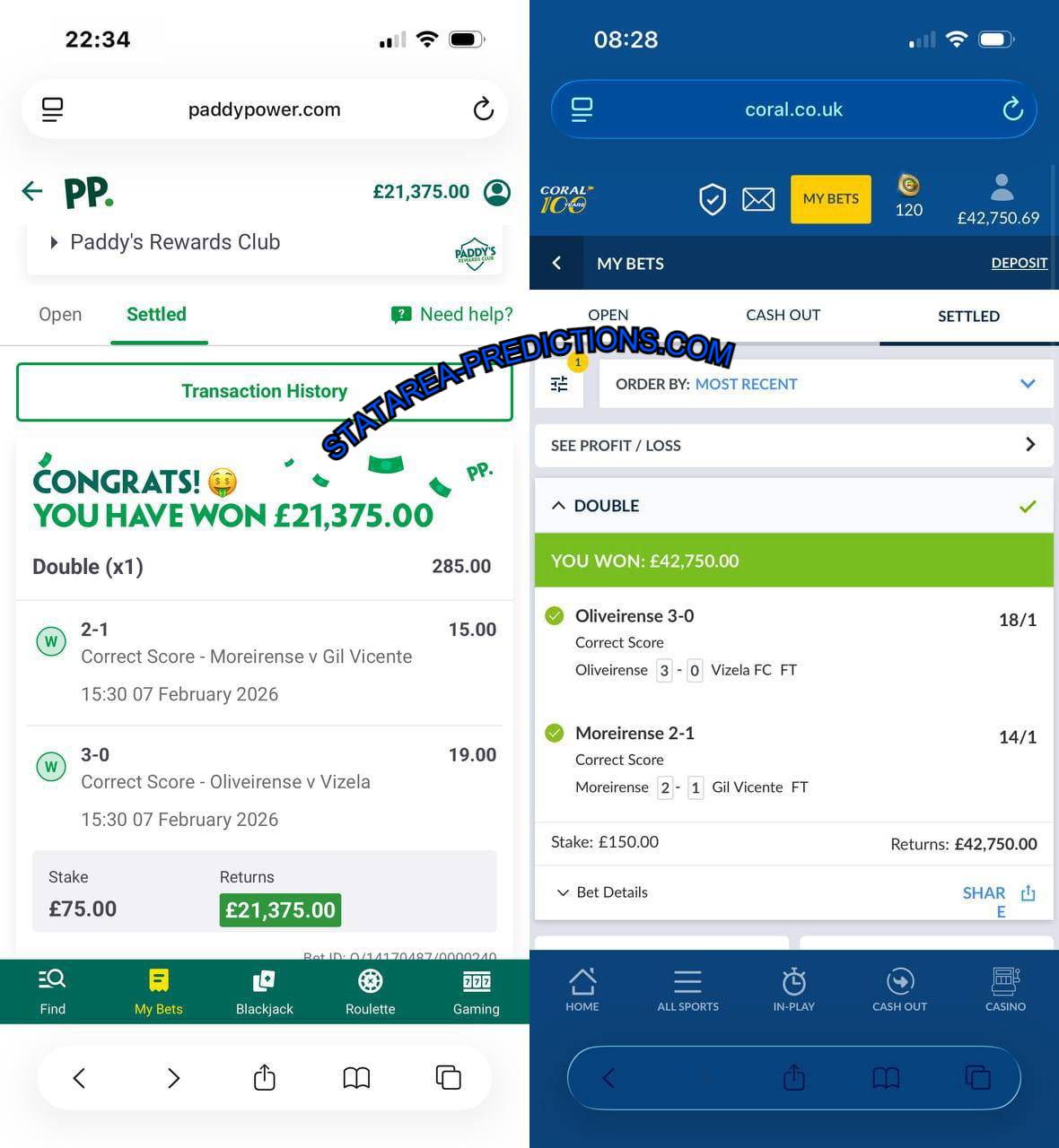 | FIXED MATCHES STATAREA PREDICTIONS PACKAGES: |