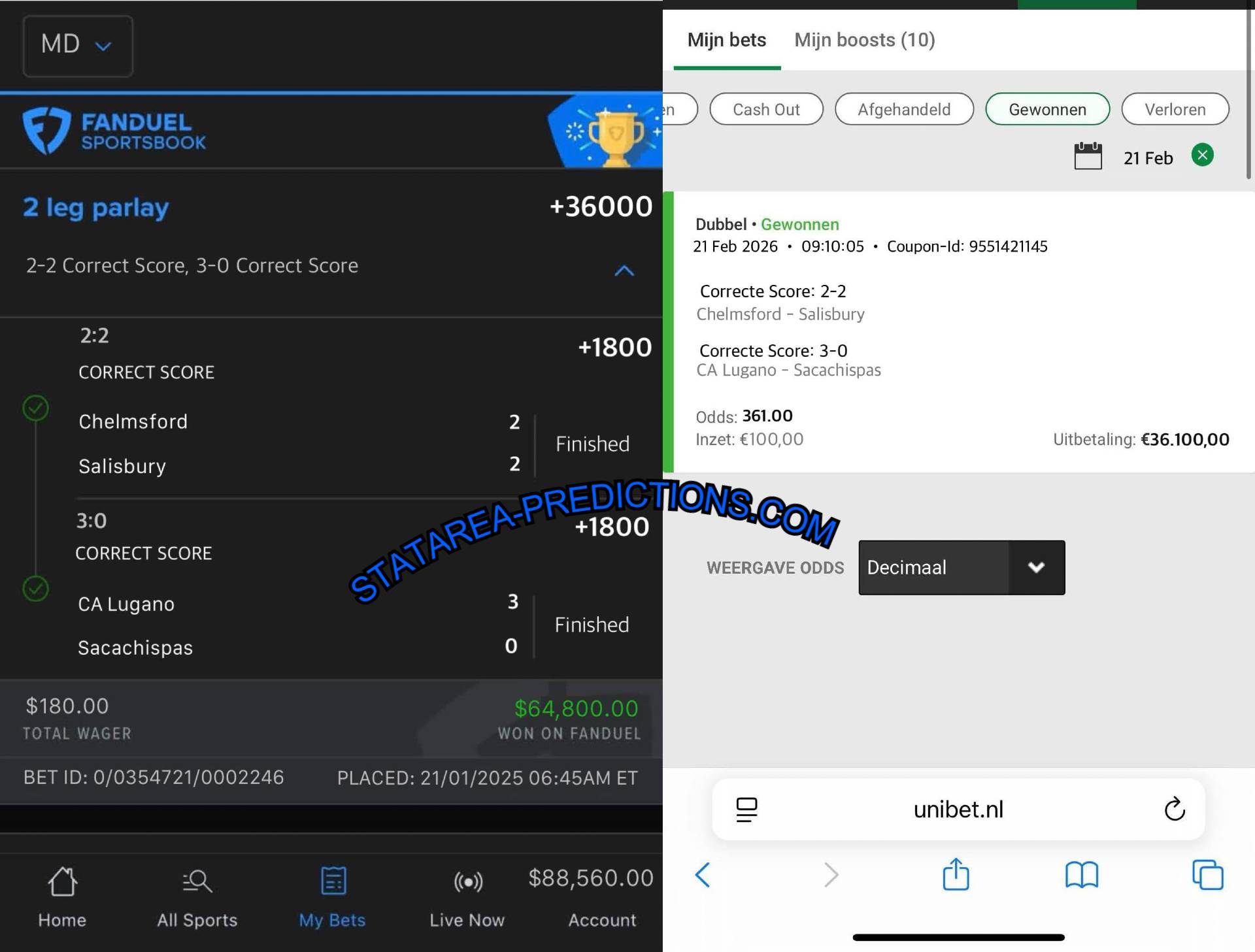 If you want to make money from fixed matches contact us. Statarea-Predictions Guaranteed Full Cost of our VIP Clients. Otherwise free fixed matches are not 100% safe. Due to Free fixed matches today manipulated fixed matches. Also Fixed Correct Score Matches are 100% sure, best fixed matches and sure fixed matches. Due to you choose this offer guaranteed profit.