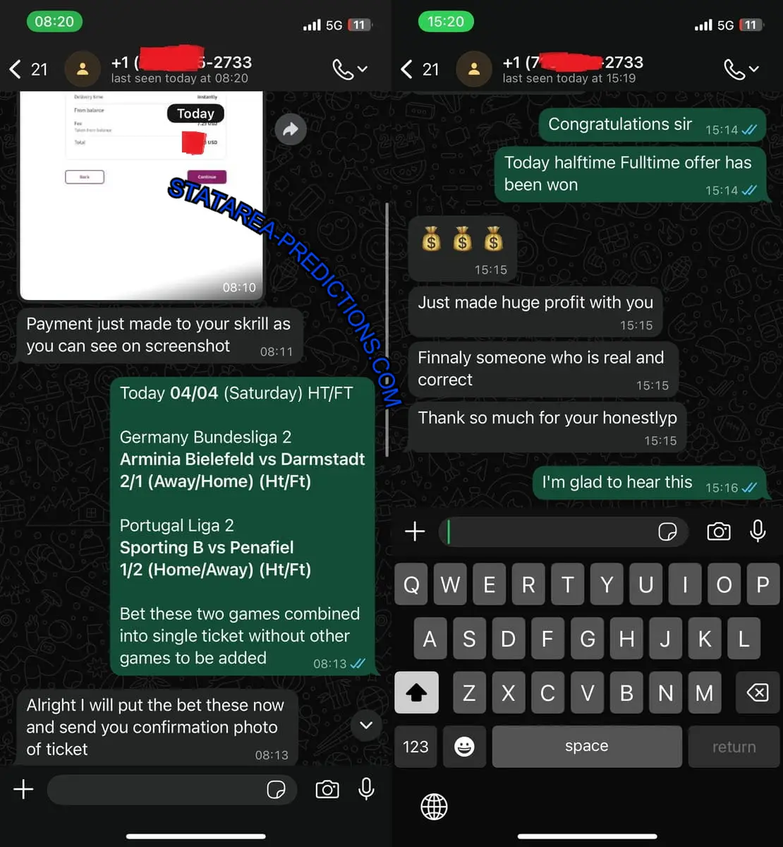 Free matches are not 100% Secure. Therefore, we have 100% sure fixed matches since 2010. You can enjoy our free tips, or you can subscribe and make real money. All you need to do is contact our agent, make a deal, and watch how your profit grows. In addition, we show our proofs and guarantees for our matches.